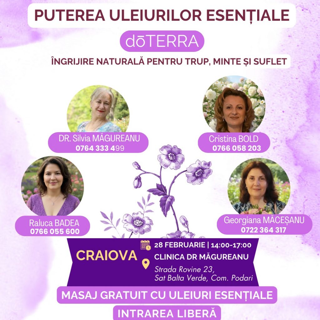 Te invit la un eveniment deosebit, unde vom vorbi despre uleiurile esențiale doTERRA, despre cum ne pot susține corpul și emoțiile și despre ritualuri simple de îngrijire naturală.